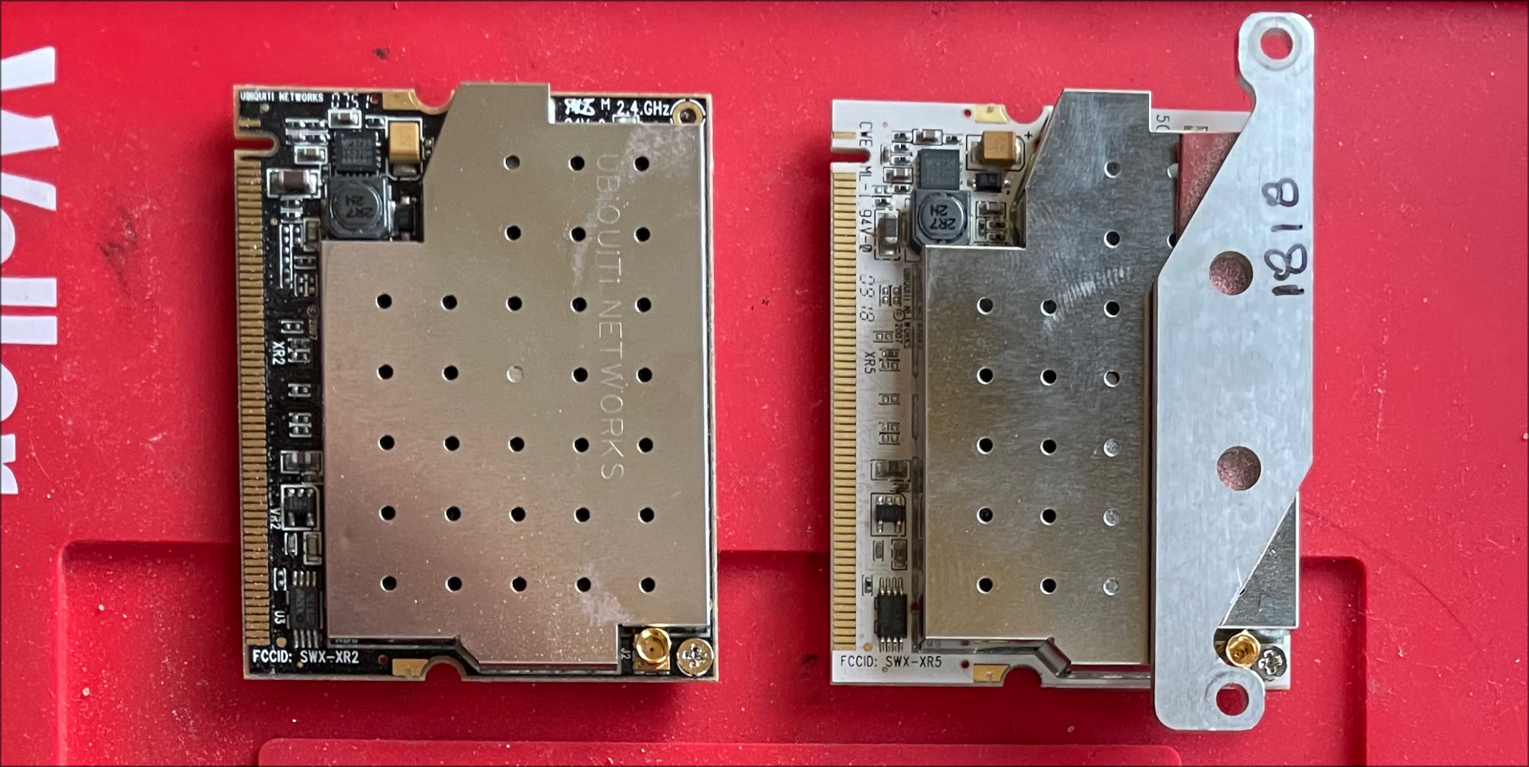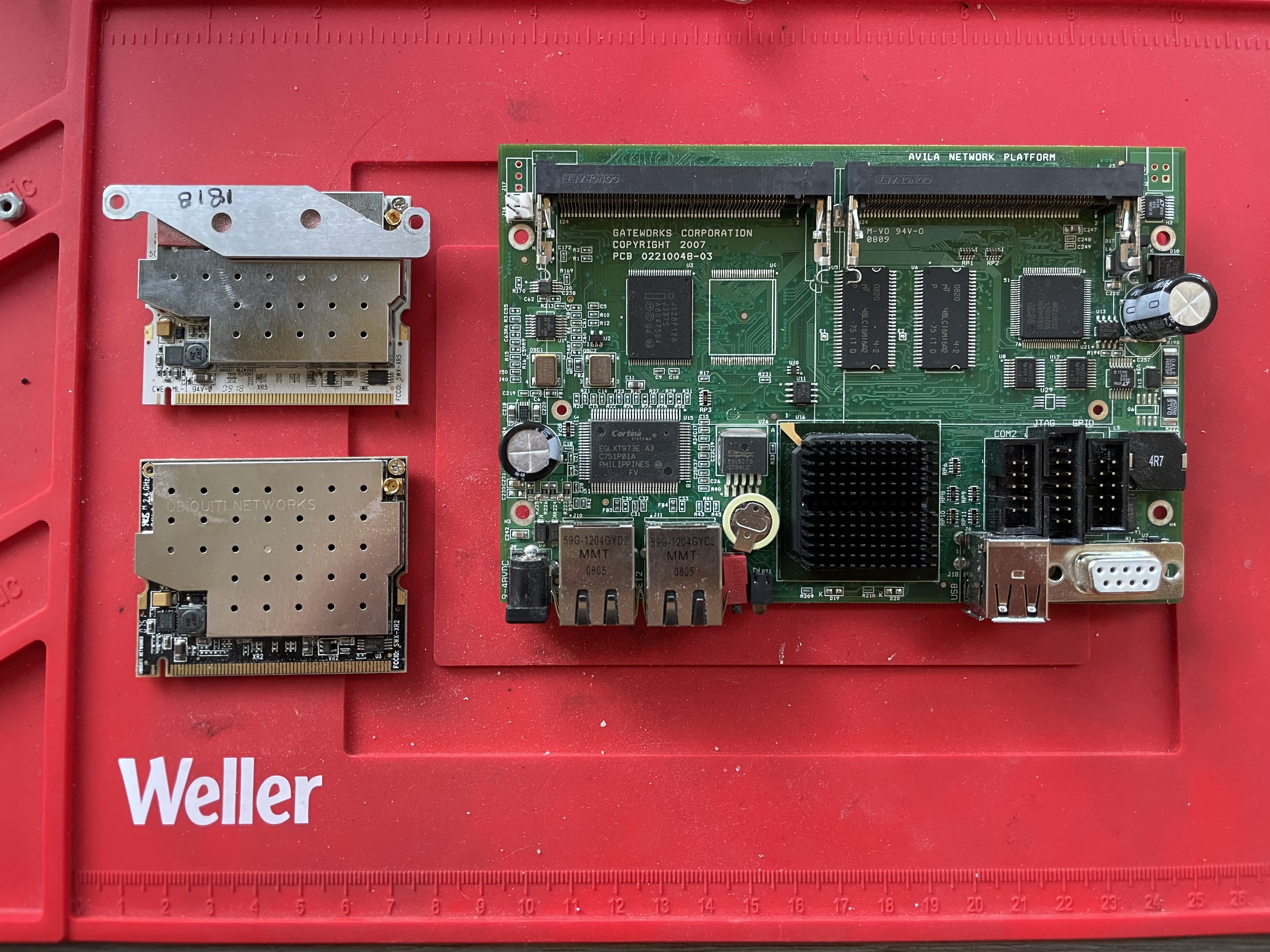 These also have an interesting story. Today I found out that Ubiquity used to make expansion cards. These two lil dudes are wireless cards that operate on the 802.11g standard which like a lot of these components is older than me. The two cards are the (from left to right):