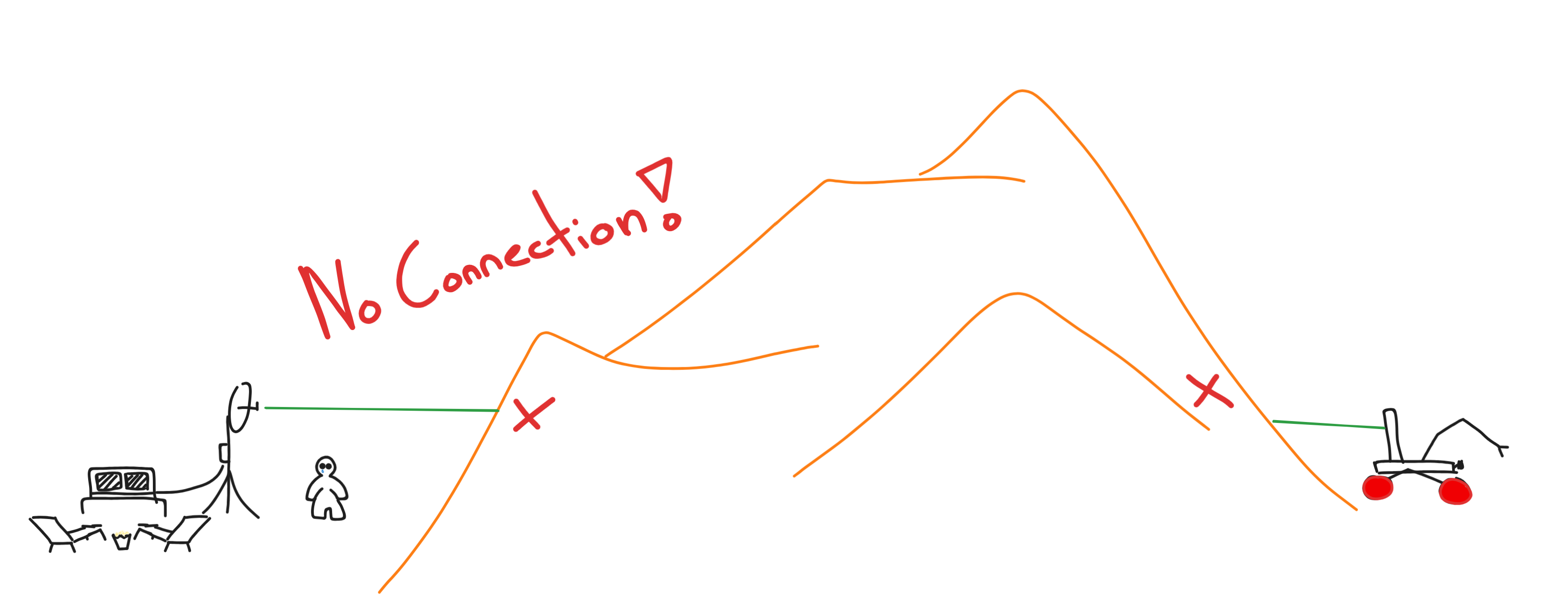 There’s an issue though, we can’t enjoy our mountain movie if our antennas cannot talk to each other. This can certainly happen when our rover is out of range, or more specifically, not in line of sight. When we leave line of site our radio waves tend not to be able to travel very well through the rough martian terrain, so we need to figure out how to extend our range.