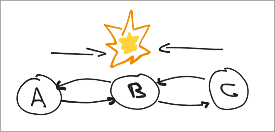 Fuckkkkk. So there’s a limitation to what we can do reliably due to this system having a hidden node. Node A is aware of B and it’s timing of messages, C is aware of A’s existence, and B of course knows about both A and C. But the problem is that A is not aware of C and vice versa. This means that both A and C might try to send signals to B simultaneously leading to race conditions, dropping entire packets. This is the hidden node problem, and is something that is difficult to solve efficiently simply with software. One such way is through TDMA (time division multiple access) which is a mechanism in which each node is assigned a schedule of when it can send and cannot send. This ensures that A and C never send B data at the same time. Unfortunately this is not an option for us to implement on the existing system (yet…) .